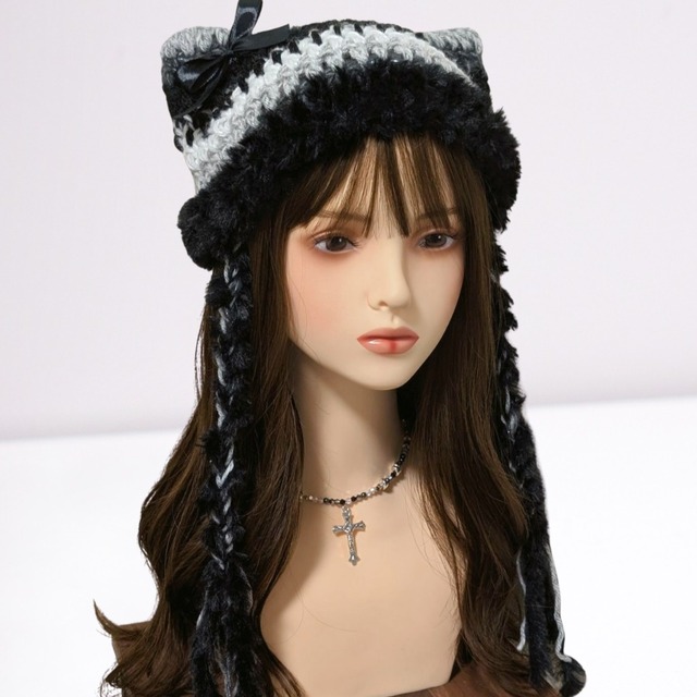 ˚✩∗*゚⋆。˚✩☪︎⋆。˚✩˚✩∗*゚⋆。˚✩⋆。˚✩☪︎⋆ モノクロのハンドメイド猫耳ニット帽✮*。゚ ˚✩∗*゚⋆。˚✩☪︎⋆。˚✩˚✩∗*゚⋆。˚✩⋆。˚✩☪︎⋆ ☆頭囲⋯マネキンの頭囲が54cmとなっております。 ハンドメイド品のため、多少のズレ等ある場合がございます。ご了承ください。