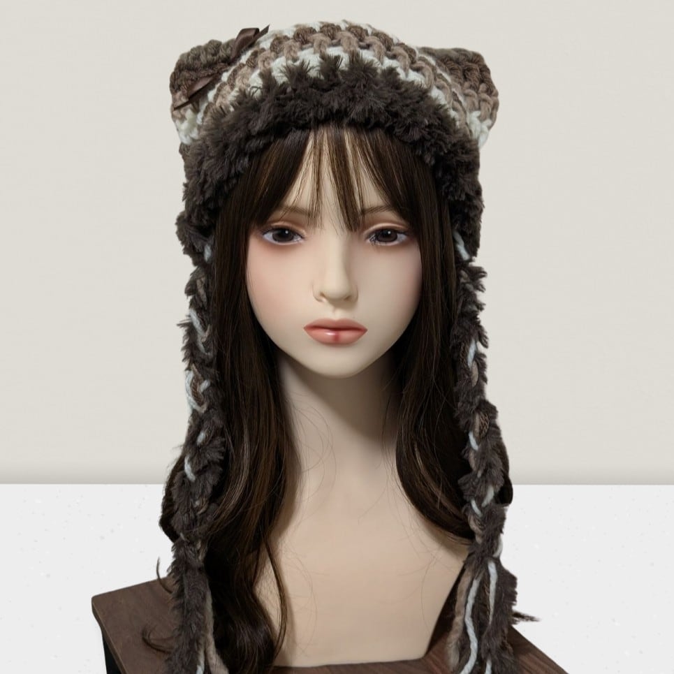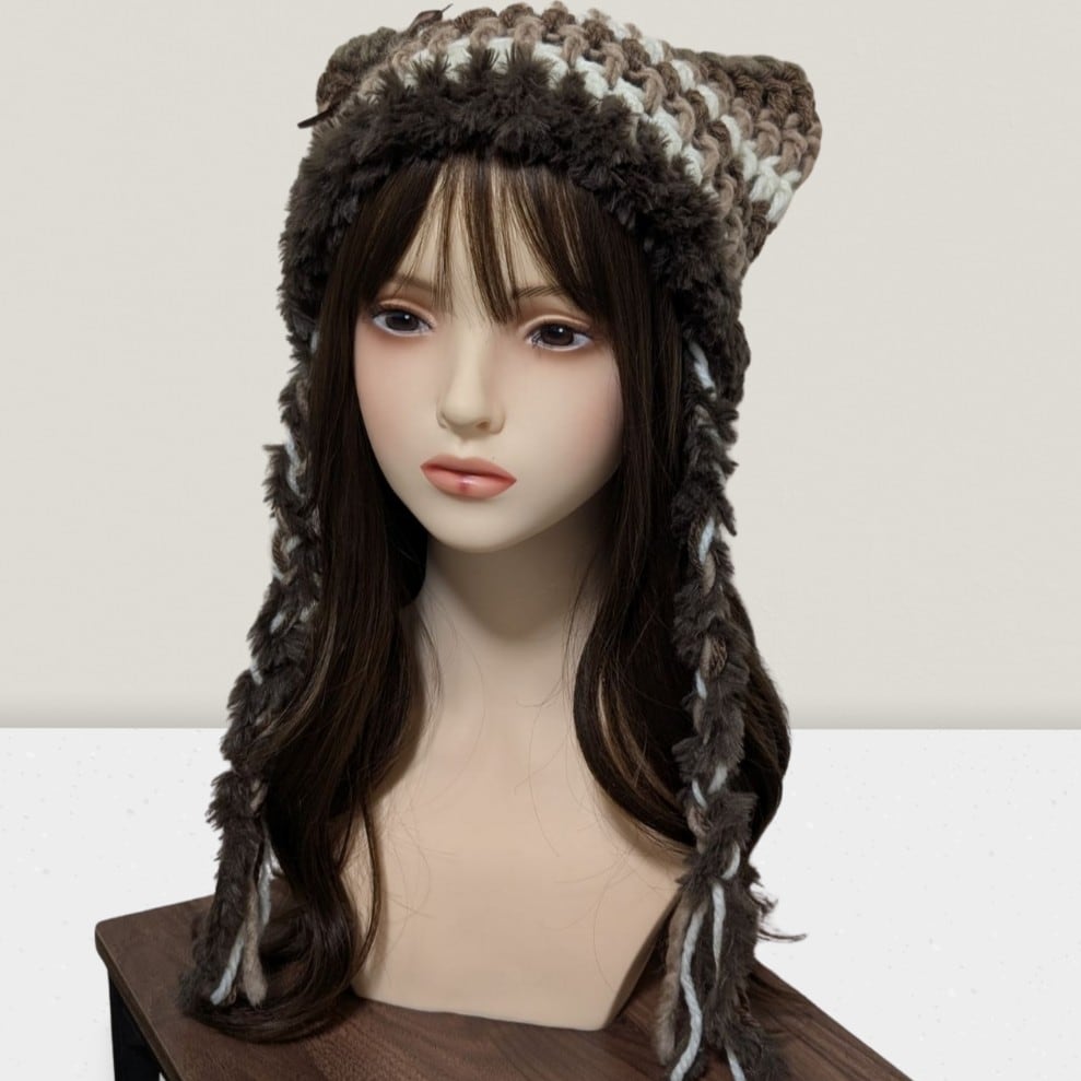 ミルクチョコレートのように甘く、とろけるような可愛さの、ハンドメイド猫耳ニット帽✮*。゚