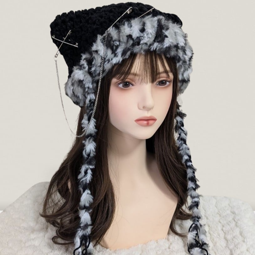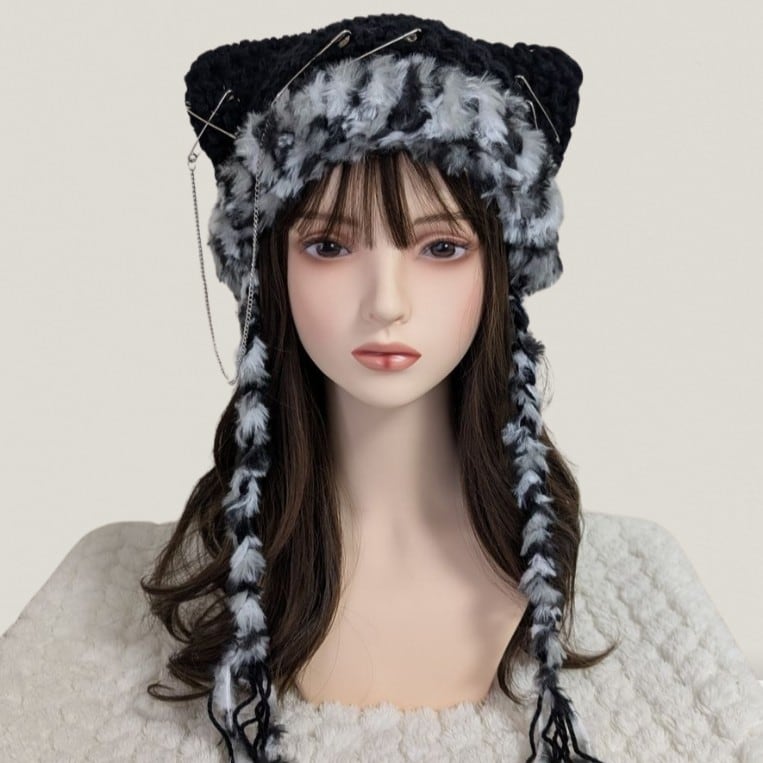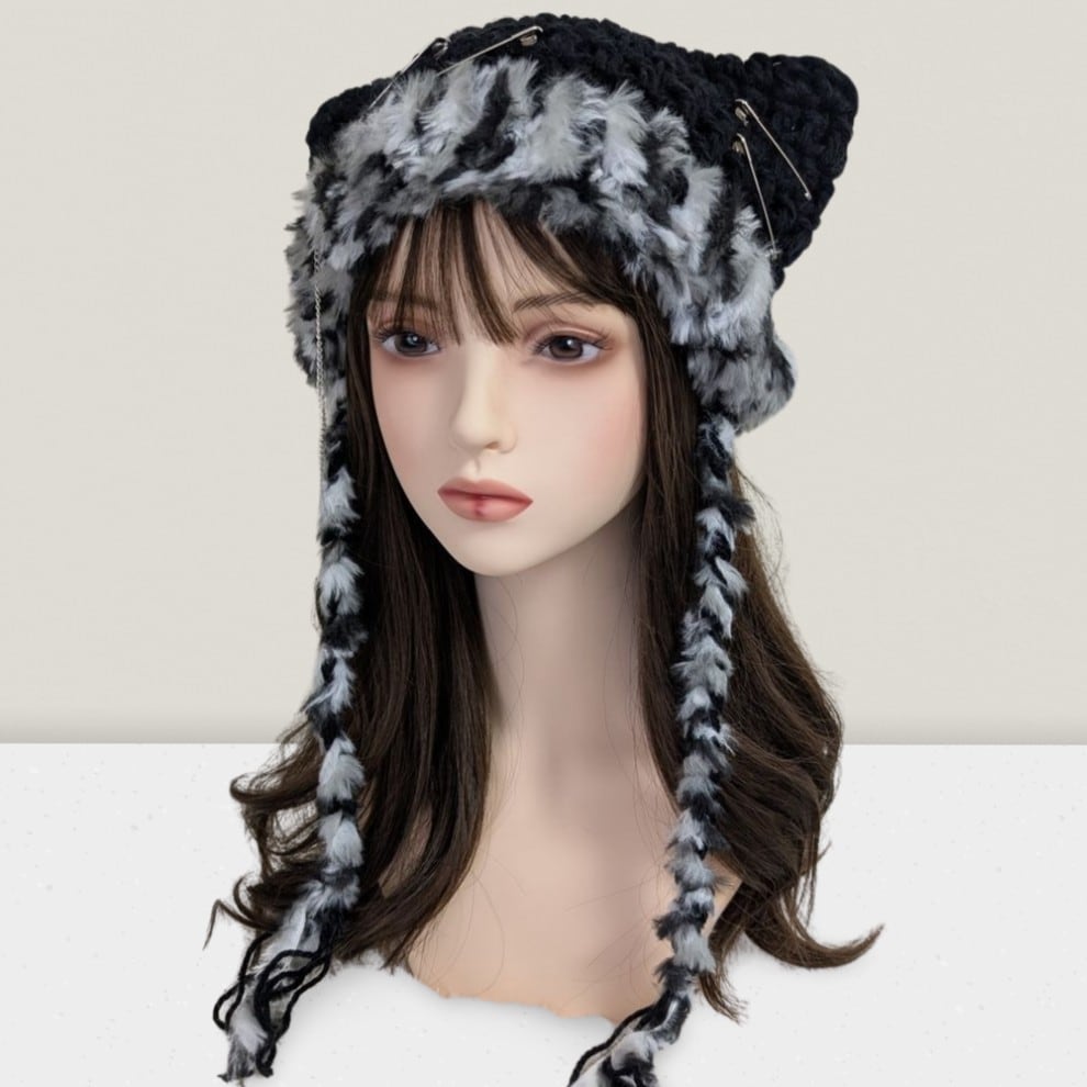 暗い雲をイメージしたハンドメイド猫耳ニット帽✮*。゚
