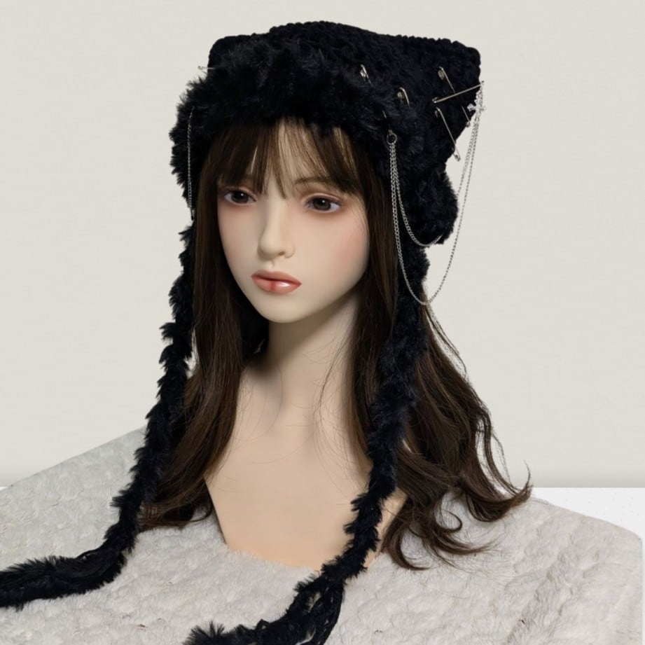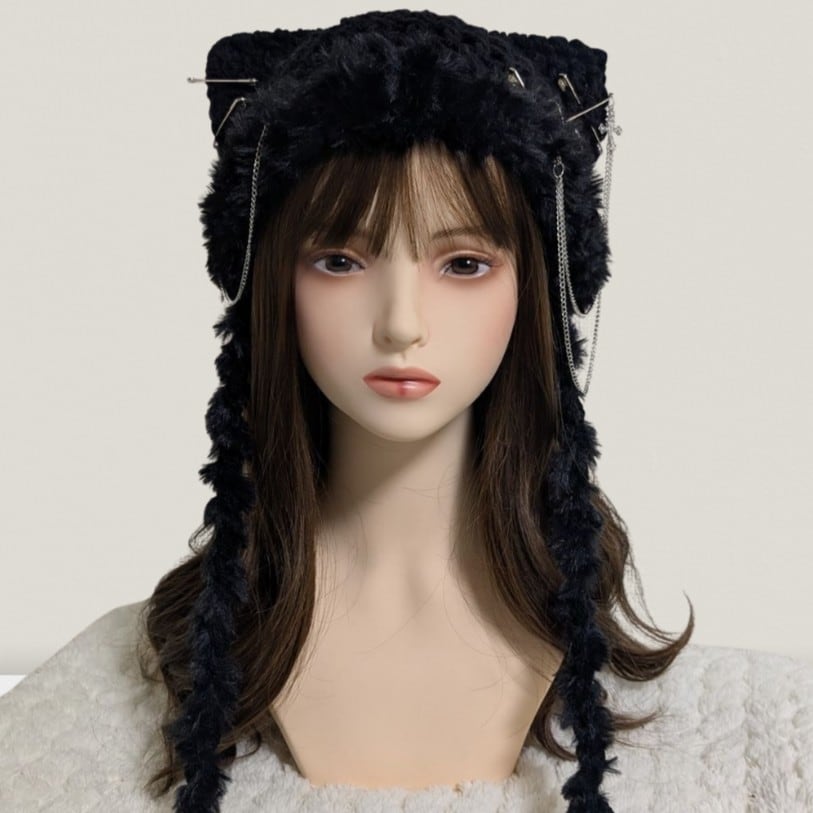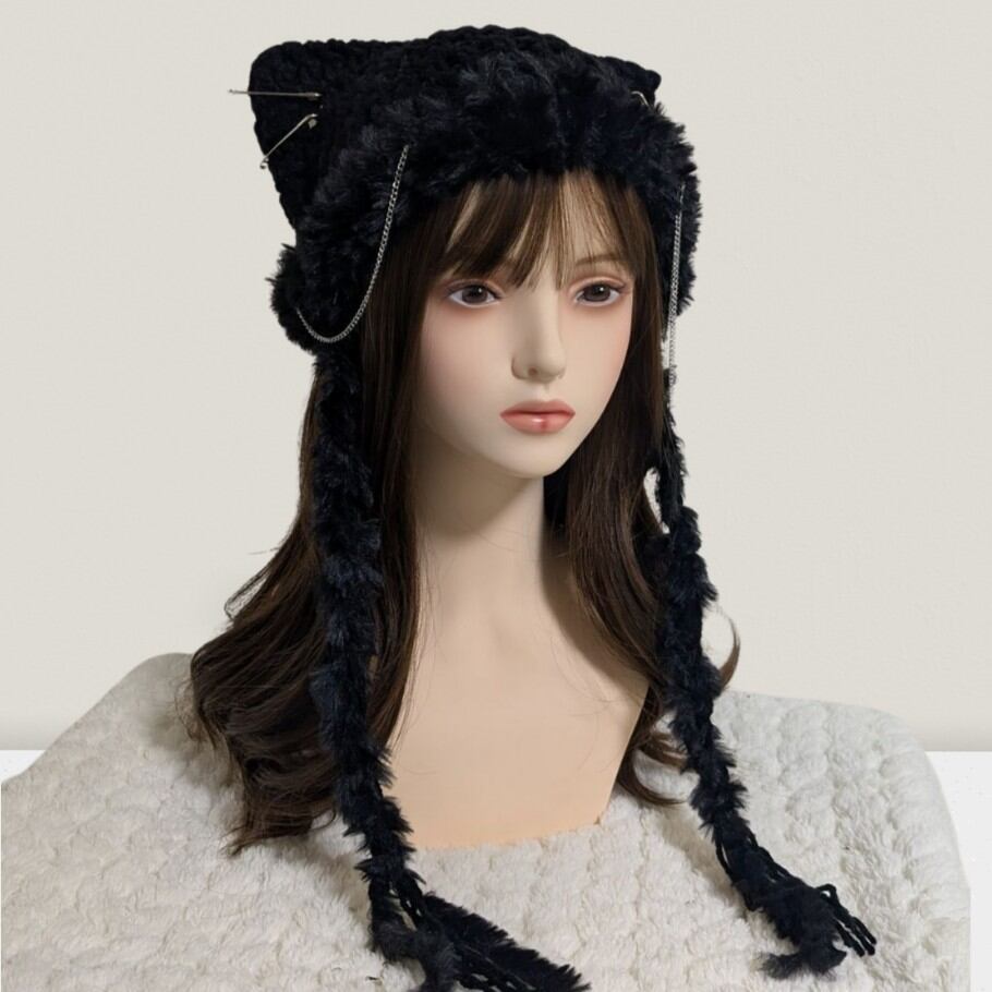 Cat Beanie^_ ̫_^ allblack×chain